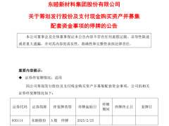 【導(dǎo)讀】籌劃購買富馳高科35.75%股份,東睦股份股票明起停牌2月24日晚間,東睦股份(600114)發(fā)布公告稱,公司正在籌劃以發(fā)行...