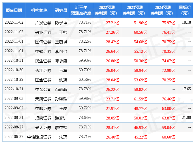 最新盈利預(yù)測(cè)明細(xì)如下: