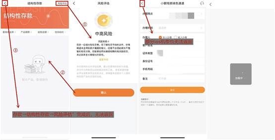 不過,App個別交互存在bug,只能強制退出App:一是,“存款→結(jié)構(gòu)性存款→風(fēng)險評估”完成后,無法返回;二是,部分IOS客戶端“網(wǎng)點查詢→小額殘損綠色通道”無法返回。