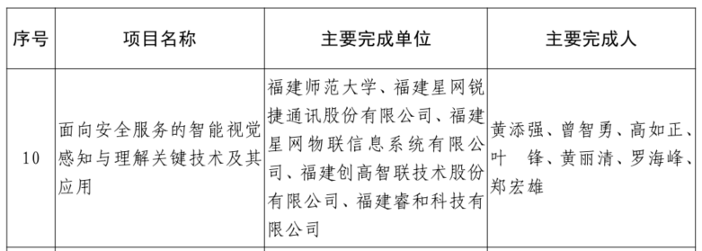 近日,福建省政府公布了2021年度省科學(xué)技術(shù)獎勵結(jié)果。由“福建星網(wǎng)銳捷(002396)通訊股份有限公司、福建星網(wǎng)物聯(lián)信息系統(tǒng)有限公司、福建師范大學(xué)”等單位共同參與的“面向安全服務(wù)的智能視覺感知與理解關(guān)鍵技術(shù)及其應(yīng)用”項目,榮獲福建省科學(xué)技術(shù)進步二等獎。