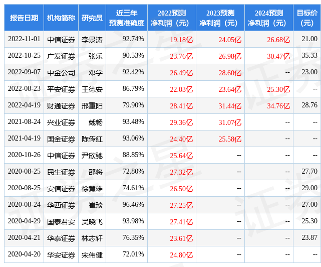 以下是詳細(xì)的盈利預(yù)測信息: