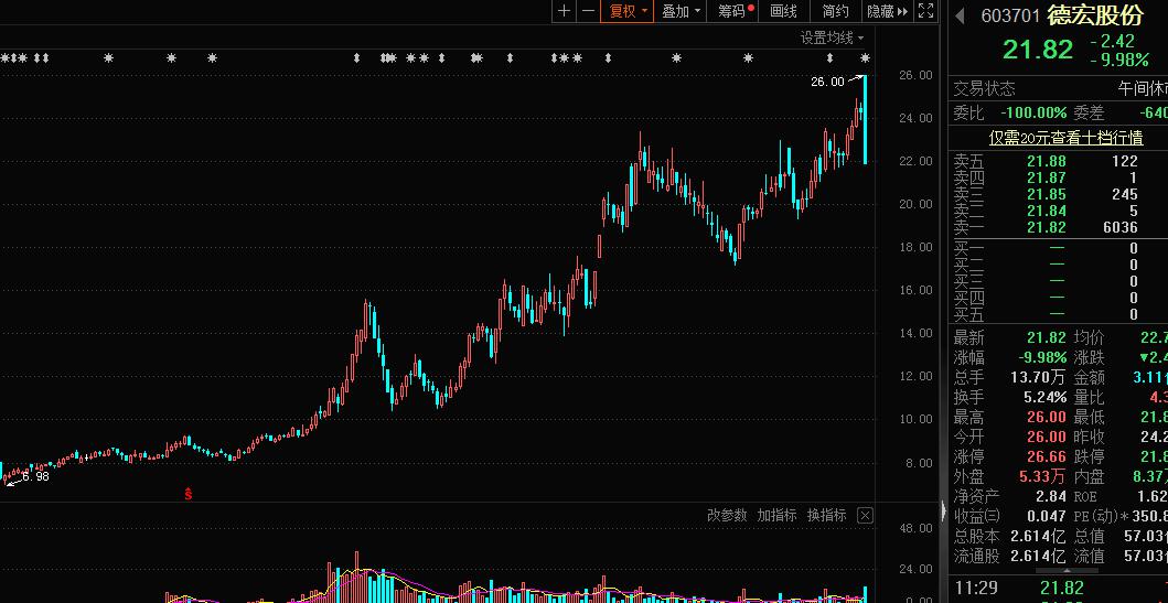 德宏股份開盤后跳水跌停