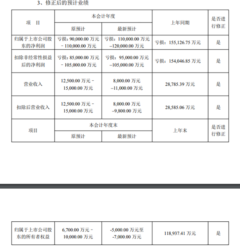 一紙業(yè)績預(yù)告修正公告,進一步揭示了*ST藍盾(300297)的退市風(fēng)險。