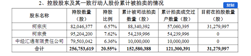 另外,柯宗慶持有的公司約3128萬股股份將被司法拍賣。