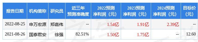 以下是詳細的盈利預(yù)測信息: