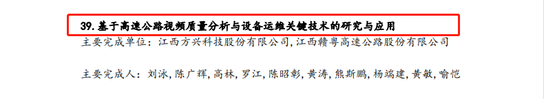 日前,中國(guó)公路學(xué)會(huì)公布了2022年度中國(guó)公路學(xué)會(huì)科學(xué)技術(shù)獎(jiǎng)獲獎(jiǎng)項(xiàng)目名單,由贛粵高速(600269)與方興公司聯(lián)合研發(fā)的“基于高速公路視頻質(zhì)量分析與設(shè)備運(yùn)維關(guān)鍵技術(shù)的研究與應(yīng)用”成功入選,并獲得二等獎(jiǎng)。