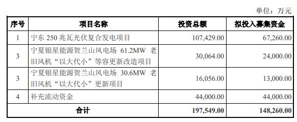 昨晚,銀星能源發(fā)布向特定對象發(fā)行A股股票預(yù)案。銀星能源本次向特定對象發(fā)行股票擬募集資金總額不超過148,260萬元,扣除發(fā)行費用后的募集資金凈額將用于寧東250兆瓦光伏復(fù)合發(fā)電項目、寧夏銀星能源賀蘭山風(fēng)電場61.2MW老舊風(fēng)機“以大代小”等容更新改造項目、寧夏銀星能源賀蘭山風(fēng)電場30.6MW老舊風(fēng)機“以大代小”更新項目、補充流動資金。