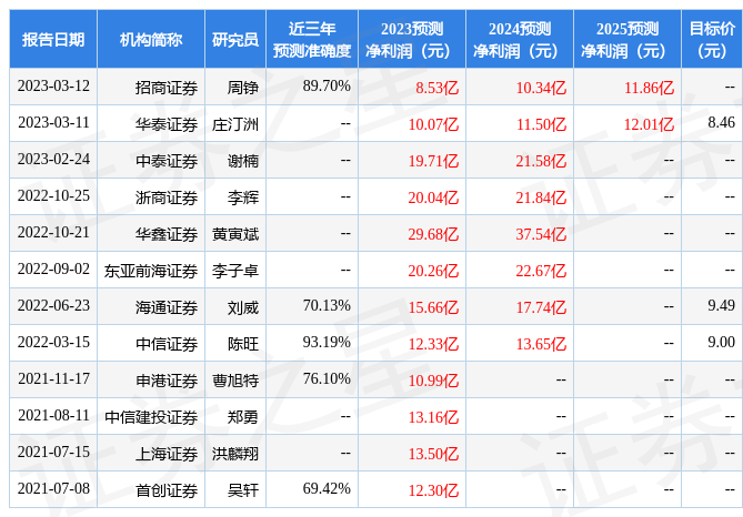 數(shù)據(jù)中心根據(jù)近三年發(fā)布的研報(bào)數(shù)據(jù)計(jì)算,中信證券陳旺研究員團(tuán)隊(duì)對(duì)該股研究較為深入,近三年預(yù)測(cè)準(zhǔn)確度均值高達(dá)93.19%,其預(yù)測(cè)2023年度歸屬凈利潤(rùn)為盈利12.33億,根據(jù)現(xiàn)價(jià)換算的預(yù)測(cè)PE為10.17。