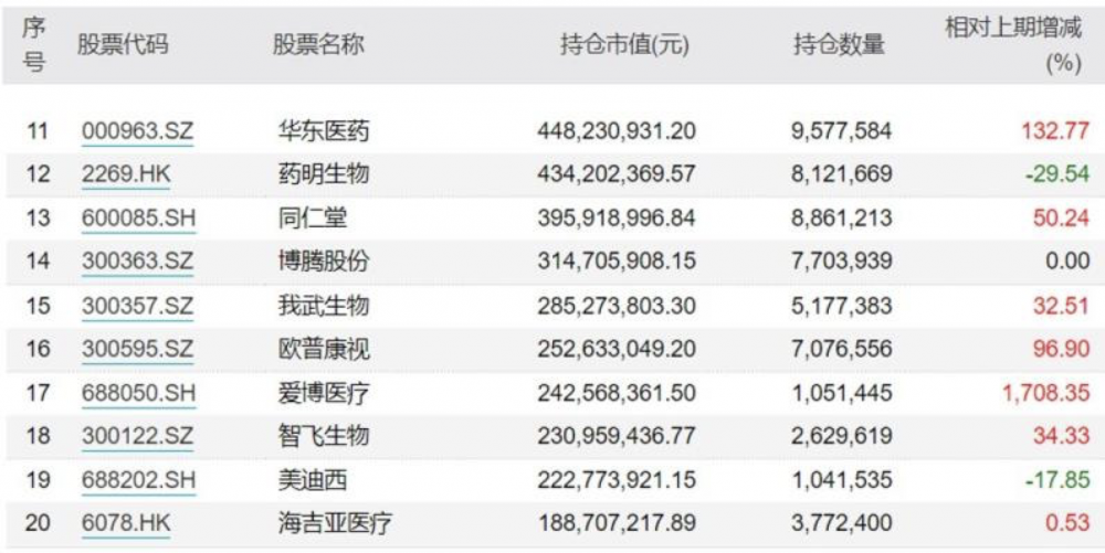 此外,昭衍新藥、華東醫(yī)藥、歐普康視等也獲20%-40%不等的加倉。