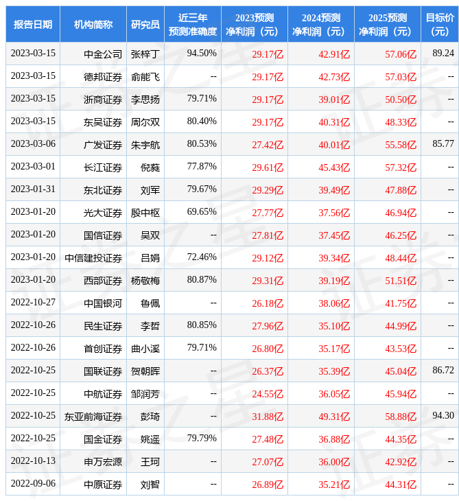 數(shù)據(jù)中心根據(jù)近三年發(fā)布的研報數(shù)據(jù)計算,中金公司(601995)張梓丁研究員團(tuán)隊對該股研究較為深入,近三年預(yù)測準(zhǔn)確度均值高達(dá)94.5%,其預(yù)測2023年度歸屬凈利潤為盈利29.17億,根據(jù)現(xiàn)價換算的預(yù)測PE為30.66。
