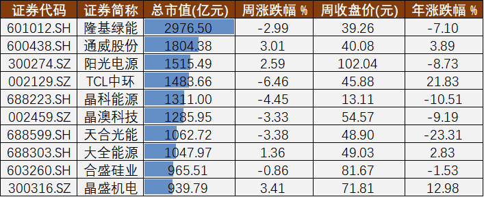 編者按:《光伏A股周報(bào)》旨在記錄、評(píng)述A股光伏板塊和龍頭企業(yè)的一周行情表現(xiàn),總結(jié)影響行情表現(xiàn)的關(guān)鍵因素,任何觀點(diǎn)不構(gòu)成投資建議。