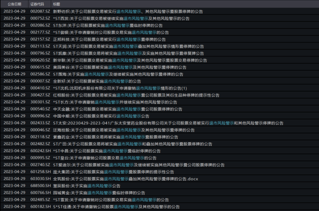 退市風險警示公告刷屏