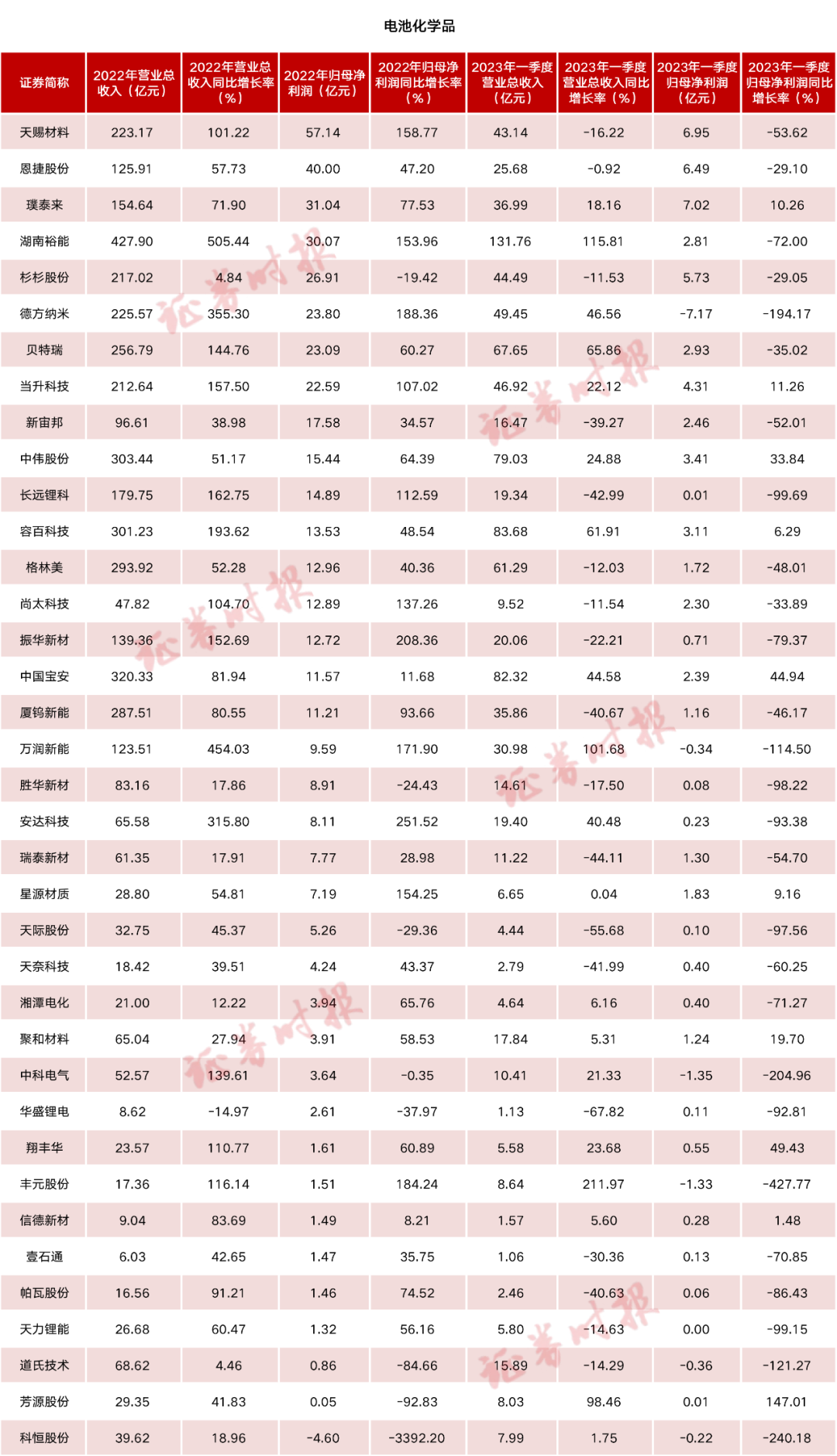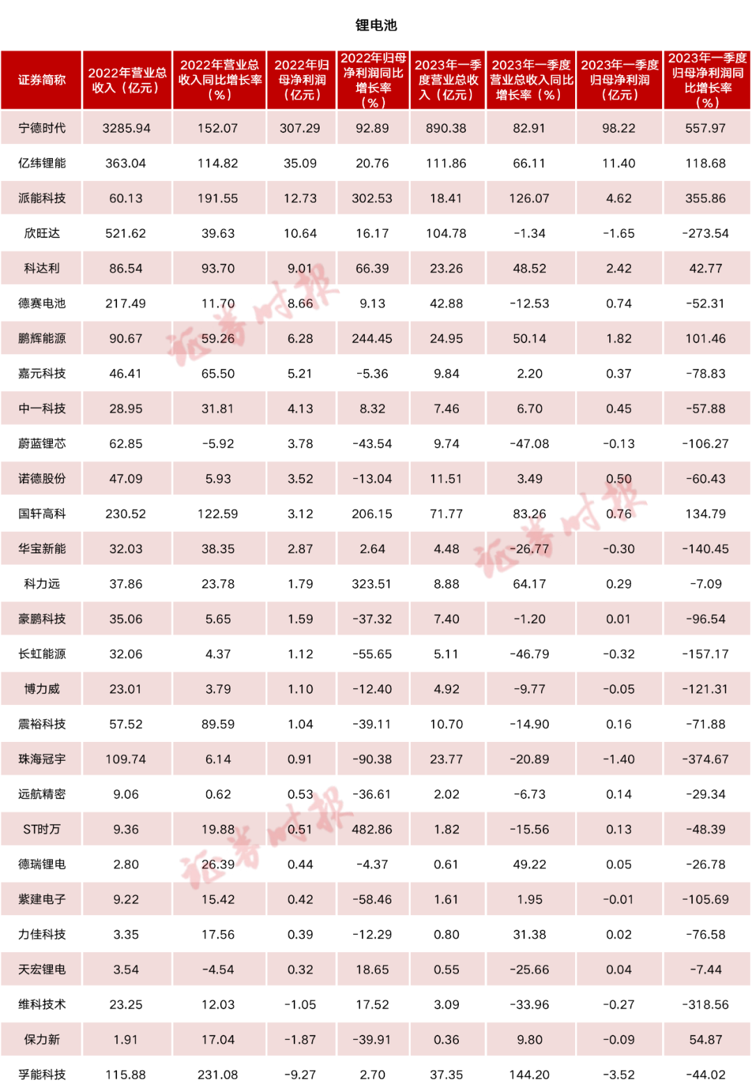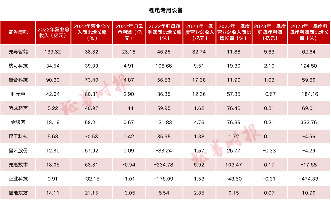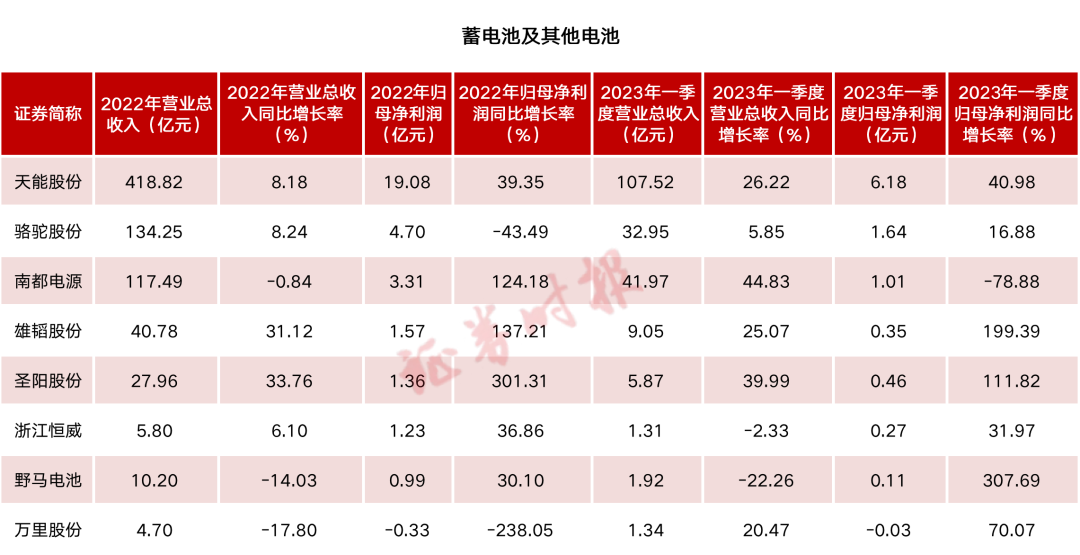 電池行業(yè)上市公司2022年報和2023一季報業(yè)績