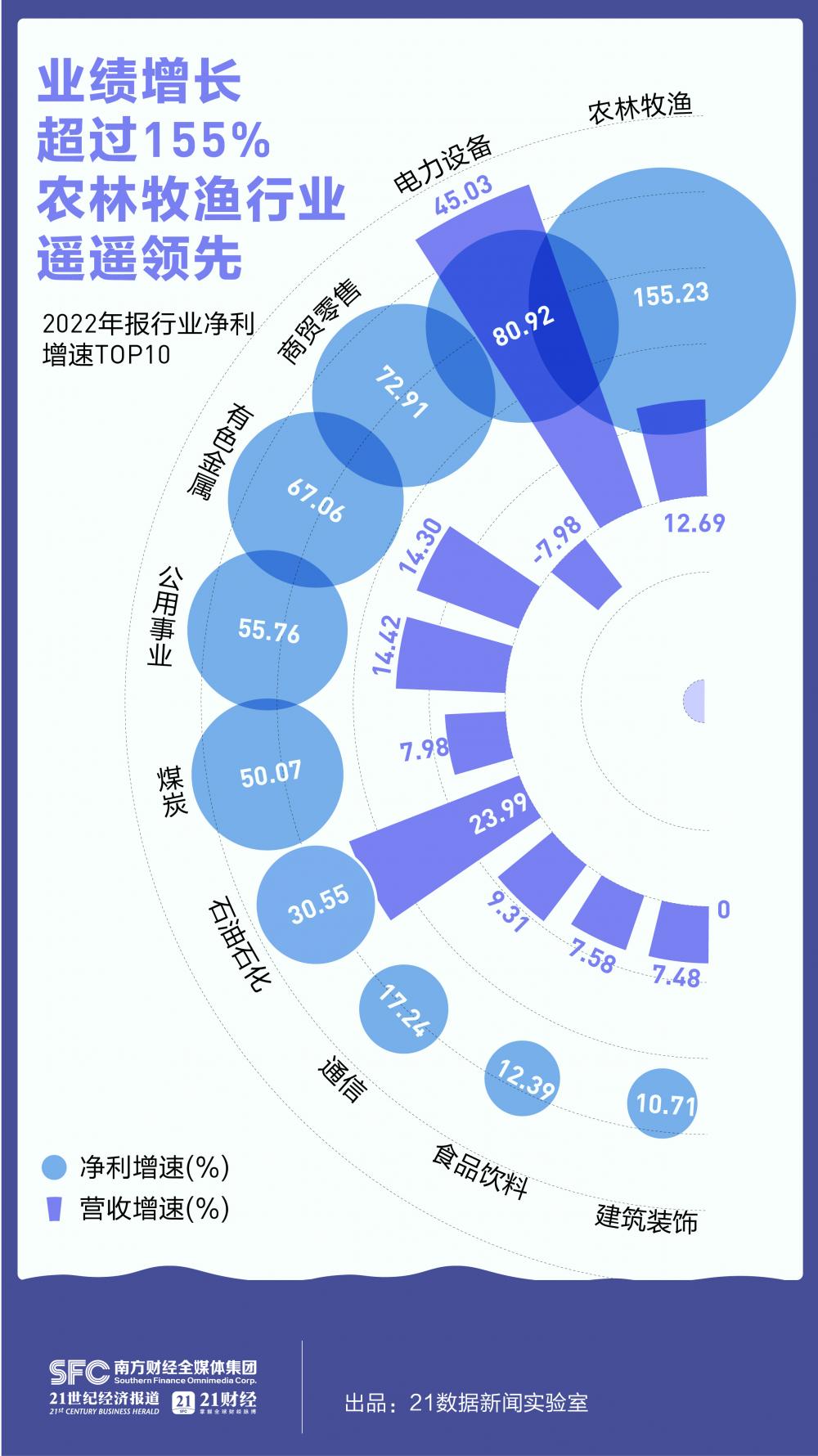 在個股凈利增速TOP10中,前9家公司的增幅均超過20倍。增幅最大的是農(nóng)尚環(huán)境(300536),2022年凈利同比大增53倍,成功扭虧為盈,實現(xiàn)凈利潤2347萬元。