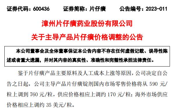 漲價170元!片仔癀時隔三年再漲價:零售價760元/粒,海外市場售價同步上漲