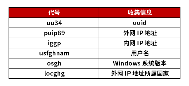 ⑤具體收集的受害主機基本信息如下表: