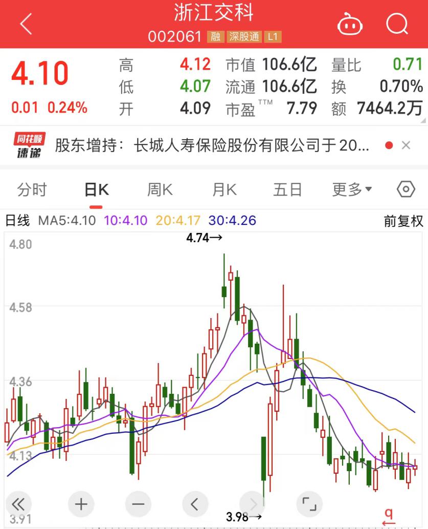 從交易均價來看,長城人壽購買的浙江交科股票目前處于浮虧狀態(tài)。