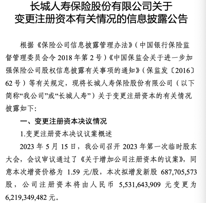 就在今年5月,長城人壽發(fā)布了一份增資公告,公司股東大會已審議通過《關(guān)于增加公司注冊資本的議案》,注冊資本將由55.32億元變更為62.19億元。