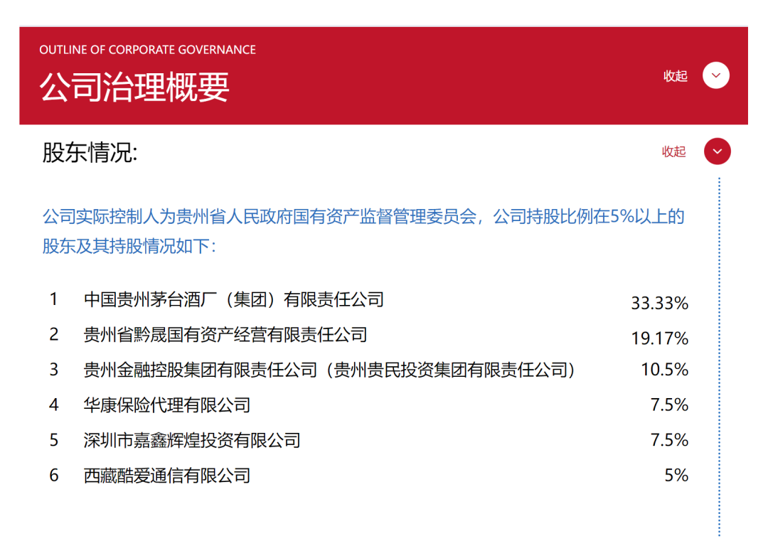 目前,華貴人壽官網(wǎng)已經(jīng)更新持股比例在5%以上的股東及其持股情況,茅臺集團持股比例為33.33%。