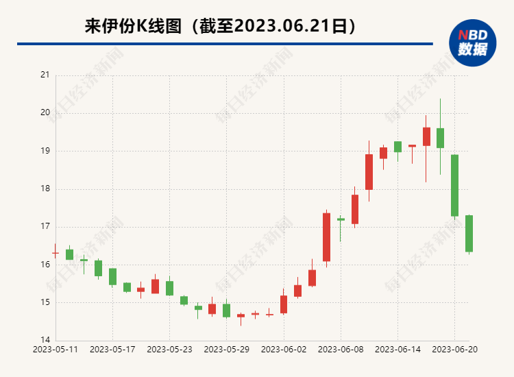 6月21日,來伊份(603777)(SH603777,股價16.35元,市值55.03億元)股價下跌5.44%,報收于16.35元,6月20日,來伊份股價跌幅達9.43%,午后一度被封在跌停板上。而在去年12月初,公司股價最高一度上漲至25.81元。