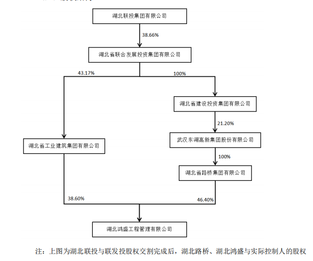 2022年7月,湖北聯(lián)投又與東湖高新間接控股股東湖北省聯(lián)合發(fā)展投資集團(tuán)有限公司(以下簡(jiǎn)稱“聯(lián)發(fā)投”)簽署《股權(quán)轉(zhuǎn)讓協(xié)議》,將湖北聯(lián)投持有的湖北工建43.17%的股權(quán)注入聯(lián)發(fā)投。