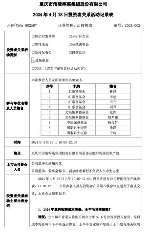 投資者關(guān)心,2024年原料收購(gòu)成本降低,全年毛利率展望?涪陵榨菜回復(fù):公司每年青菜頭收購(gòu)后將在當(dāng)年5、6月份逐步投入使用,原料成本將在每年下半年逐步體現(xiàn),上半年?duì)I業(yè)成本取決于上年度青菜頭收購(gòu)價(jià)格,青菜頭收購(gòu)價(jià)去年同期約為1100元/噸,全年整體來(lái)看原料收購(gòu)價(jià)格降低對(duì)毛利率影響不大。