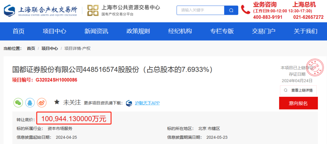 近期,國都證券第三大股東國華能源投資有限公司在上海聯(lián)合產(chǎn)權(quán)交易所掛牌轉(zhuǎn)讓所持國都證券全部股份,即此次浙商證券提及參拍的4.485億股。根據(jù)掛牌信息,此次轉(zhuǎn)讓的底價超10億元。
