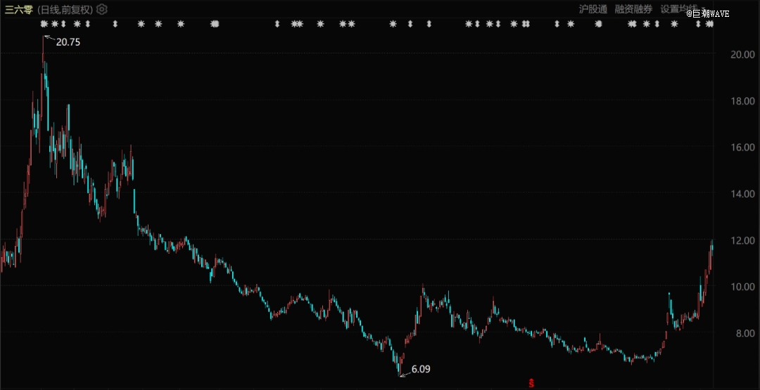 三六零股價表現(xiàn)(自2023年3月至今)