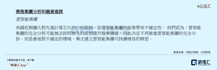 正如財報中所提到的,美國近期擴(kuò)大對先進(jìn)計算芯片出口的限制,給云智能集團(tuán)的前景帶來不確定性。因此,公司保持審慎的態(tài)度,提前研判風(fēng)險并采取相應(yīng)措施,也有助于整體業(yè)務(wù)的穩(wěn)健發(fā)展,同時也反映了公司對投資人、股東負(fù)責(zé)對態(tài)度。