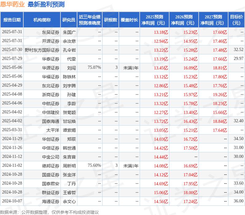 最新盈利預(yù)測(cè)明細(xì)如下: