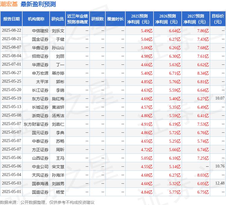 最新盈利預(yù)測明細(xì)如下: