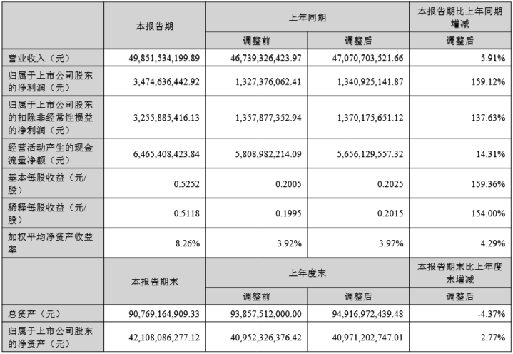 報告顯示,2025年上半年,溫氏股份實現(xiàn)營業(yè)收入498.52億元,同比增長5.91%;歸屬于上市公司股東的凈利潤34.75億元,同比增長159.12%;基本每股收益0.52元。