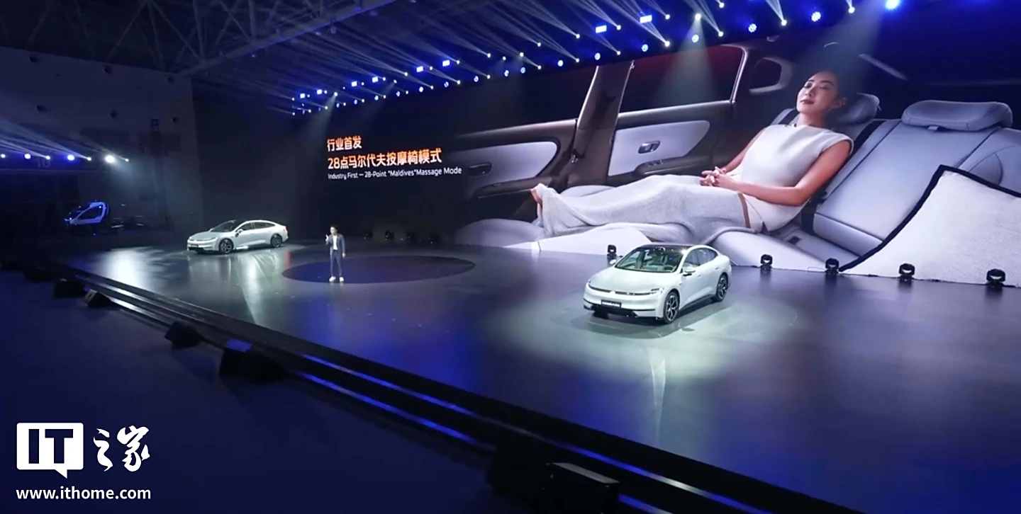 座艙方面,該車配備懸浮式中控屏和三輻式方向盤,提供 20 揚(yáng)聲器 NEVO Sound 天樞源聲音響系統(tǒng)、256 色懸浮氛圍燈,前排支持手機(jī)無線充電,后排座椅靠背支持無級電動調(diào)節(jié)、支持 28 點“馬爾代夫”全身指壓按摩,同時帶有 67W USB-C 充電接口和容積為 4.6 升的車載冷暖冰箱。